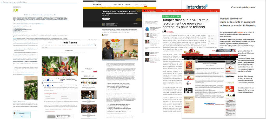 - Rédaction des communiqués et dossiers de presse : lancement de produits, témoignages clients, signature de contrats…